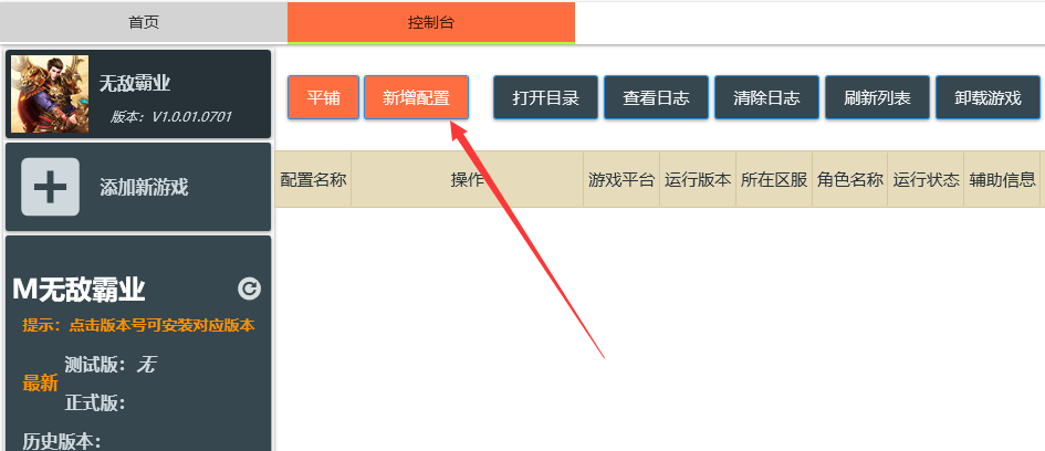 扫码登录后在首页找到您所玩的游戏打开游戏即可安装,游戏安装完成后点击新增配置