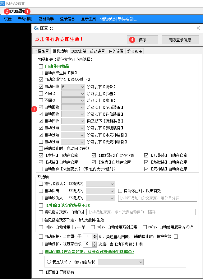 设置完成后点击保存。注:绿色字体内的功能有需要也需要您自行勾选。